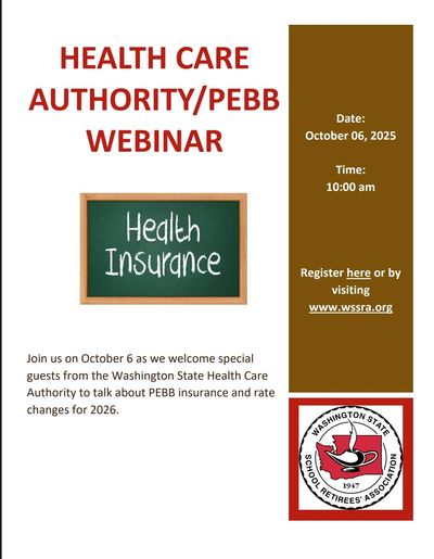 On Monday, October 6, the Washington State Healthcare Authority will present rate and plan changes for the 2026 PEBB retiree plans.